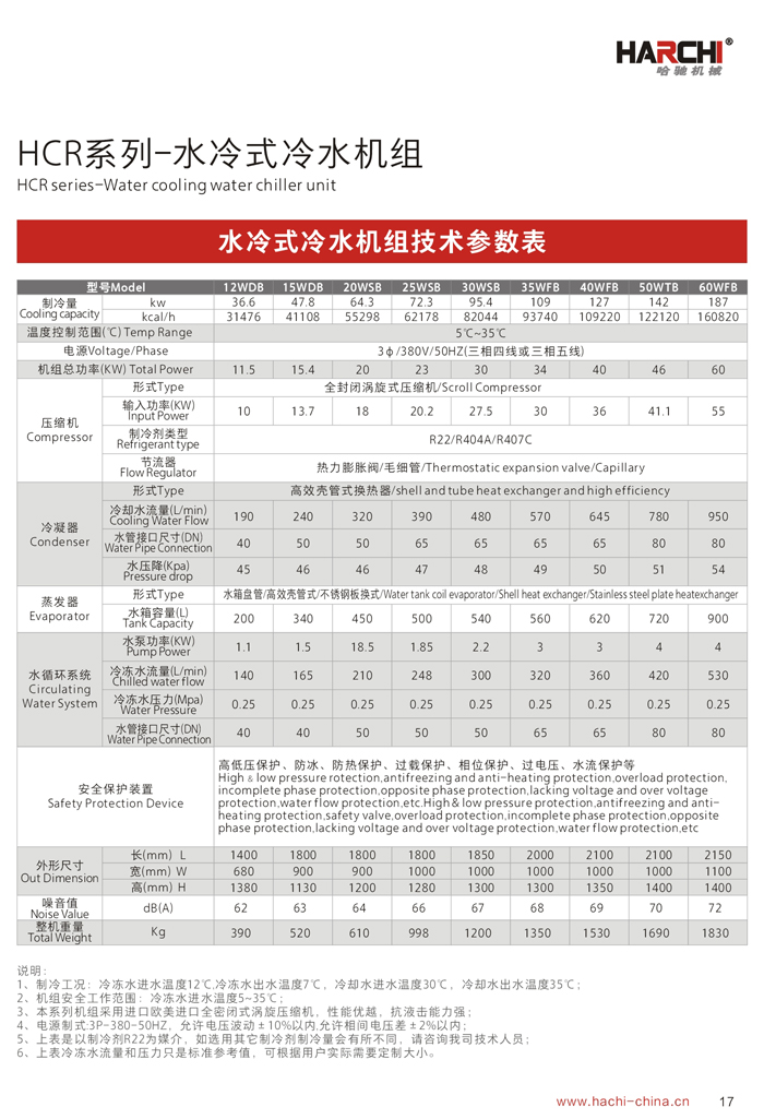 3、水冷系列需要配置冷卻水塔及冷卻水泵,冷水機(jī)放置在室內(nèi),噪音比較低,制冷效果更